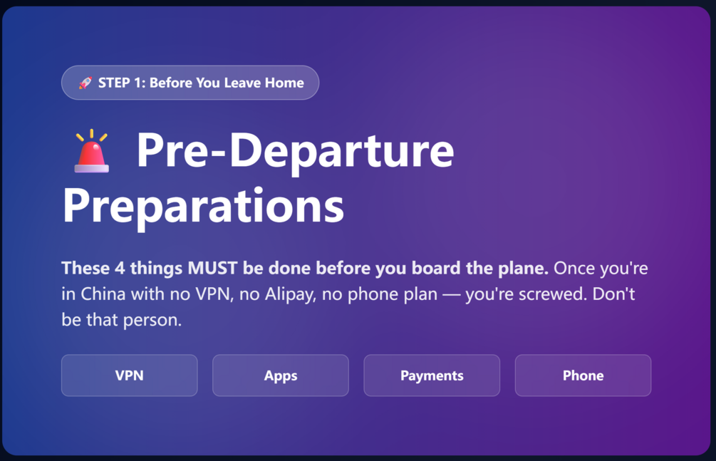 The China Survival Kit (2025 Edition) is your digital lifeline. Itβs not a boring 100-page history book. It is an actionable, step-by-step dashboard designed to get you connected and surviving in your first 3 hours.